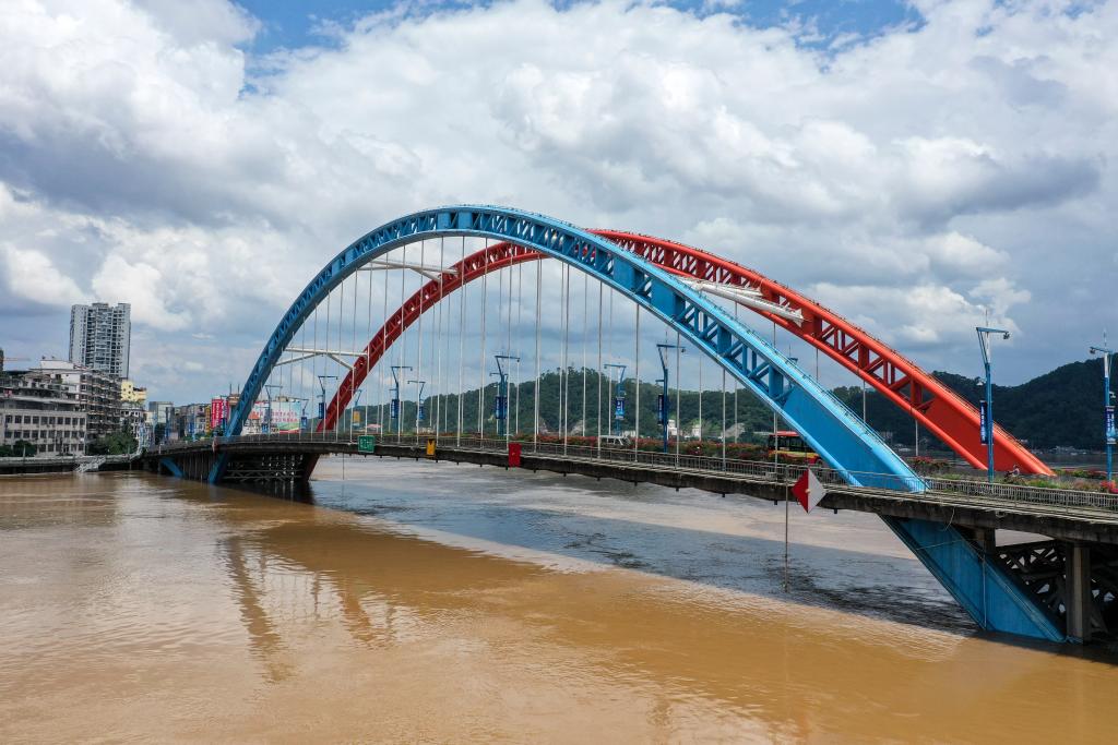 6月21日,位于浔江、桂江、西江“三江”交汇处的鸳江大桥。新华社记者曹祎铭 摄